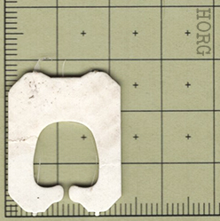 Small paper-process on oral hooks and aboral edge, large aboral divot. Long byssal threads attached to integument. Size 26.8 mm x 21.4 mm.
